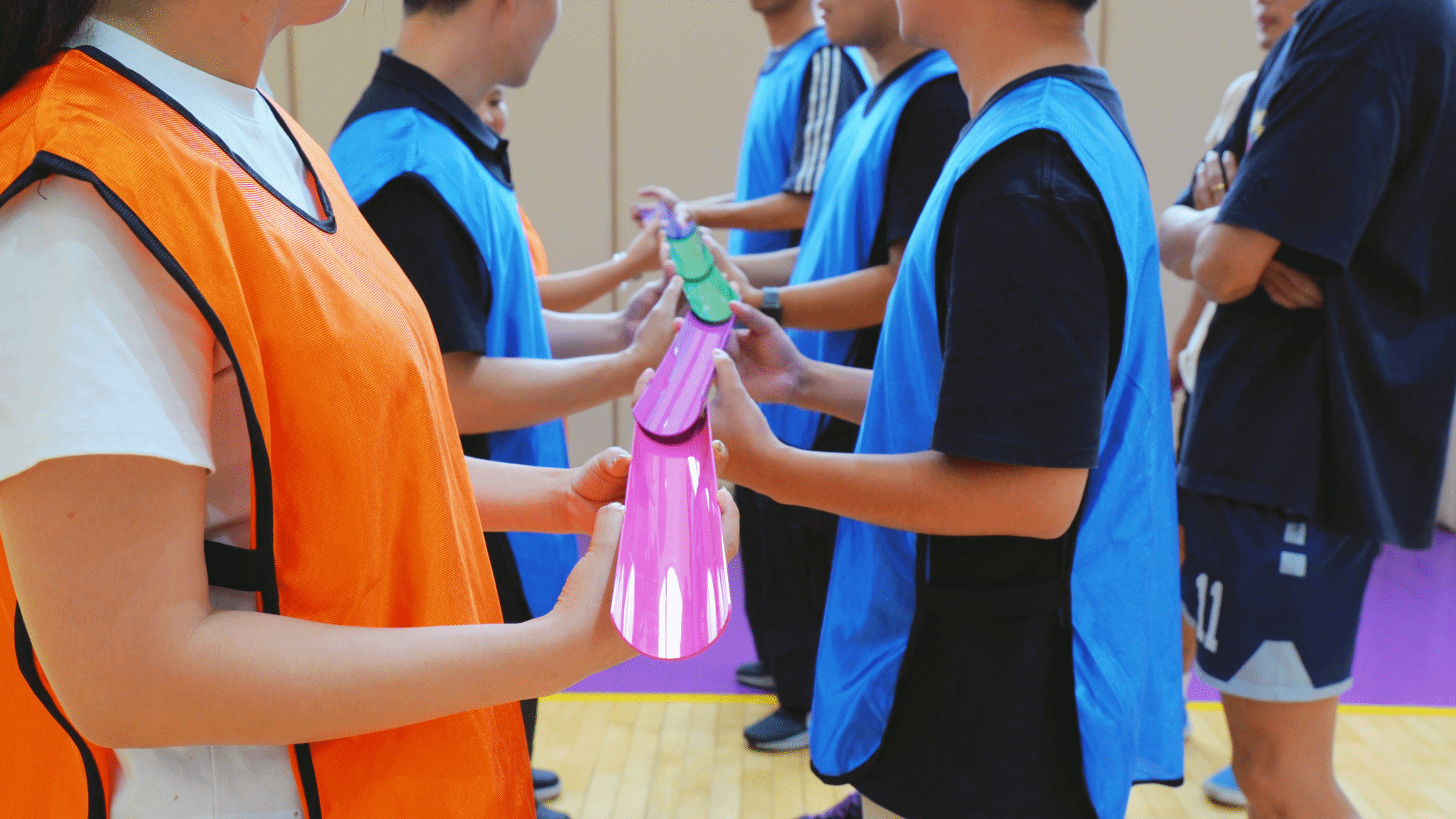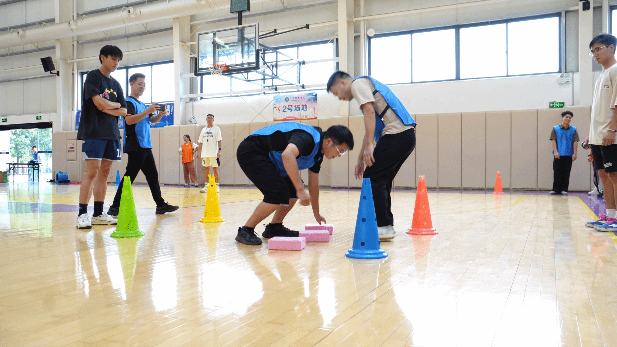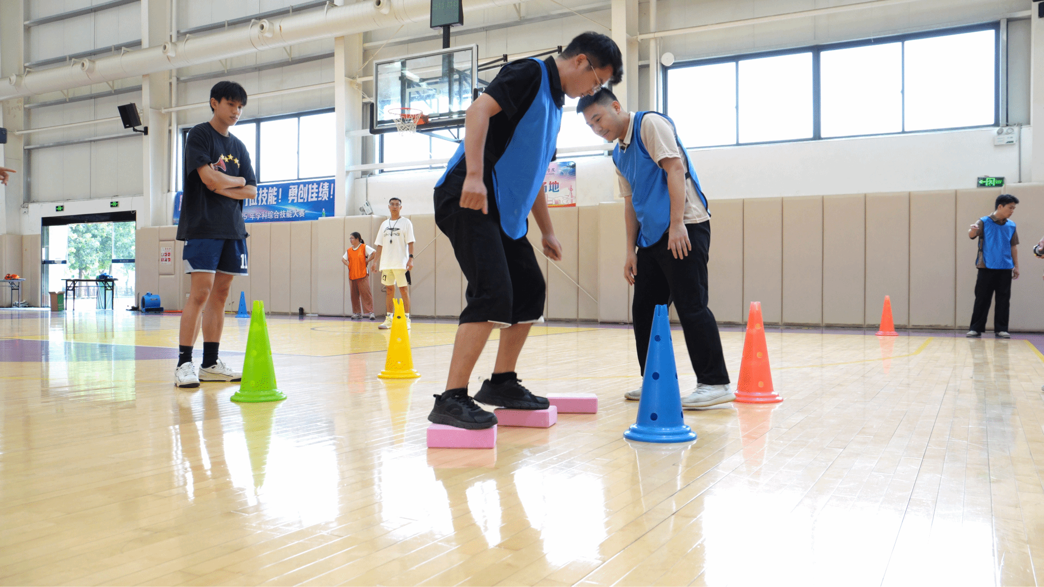 摸石过河:4人协作,步步为营,智慧与速度并存;队员们身手敏捷、节奏稳健,接力区交接流畅,展现了速度与平衡的完美结合。