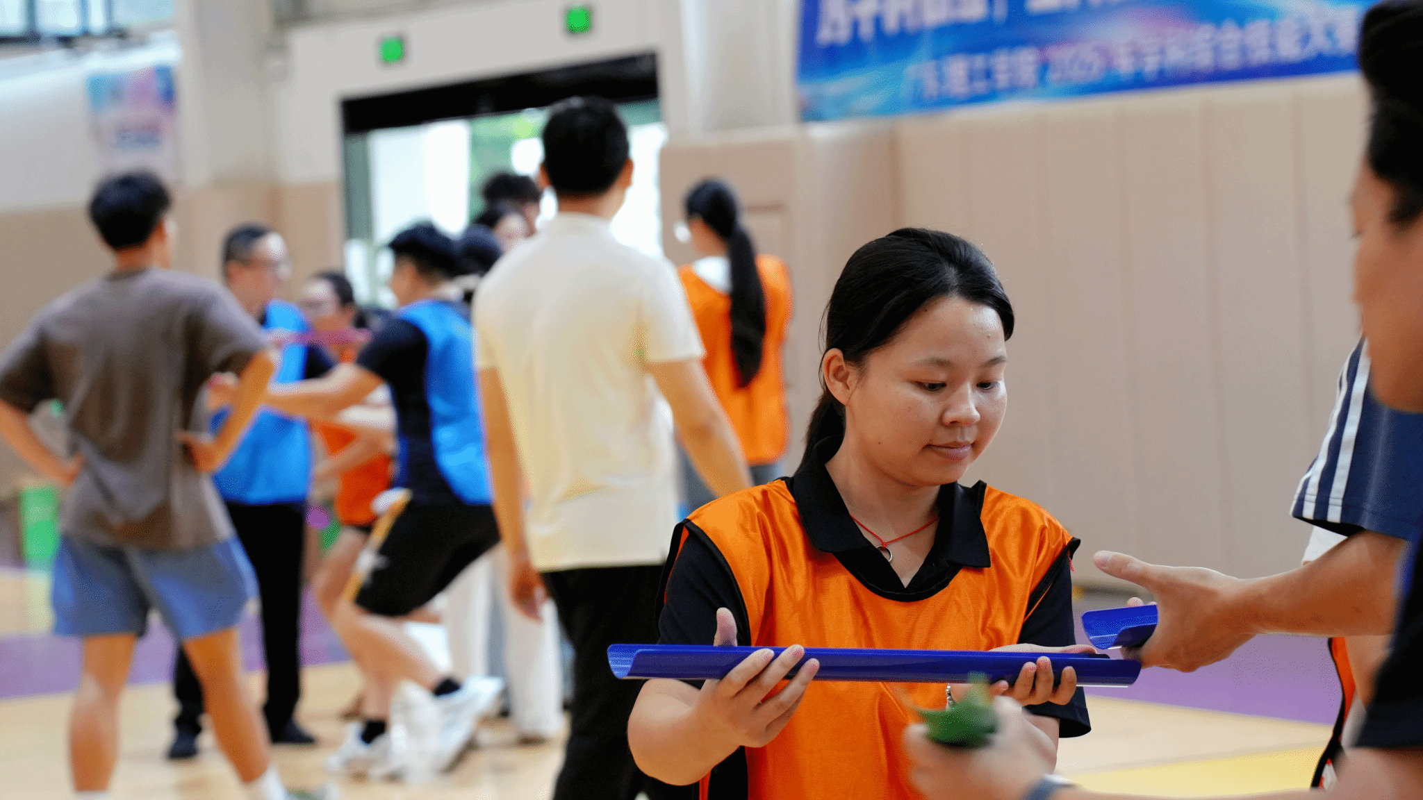 珠行万里接力:6人传槽,小球滚动,考验配合与耐心;队员们紧密衔接,动作协调,传递的不仅是球,更是信任与配合。