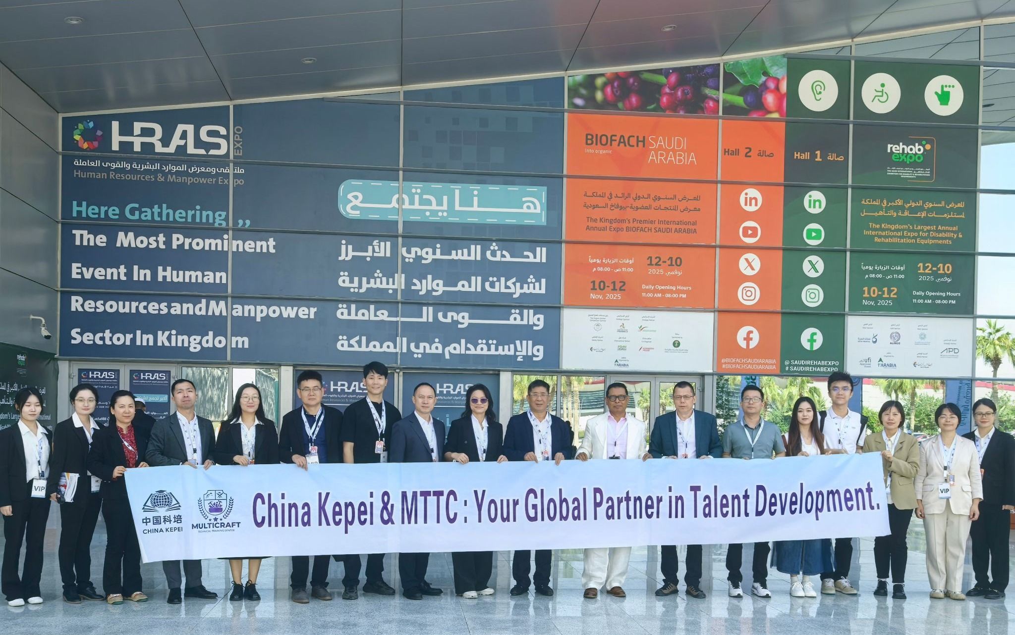 近日,中国科培教育集团董事长叶念乔、首席执行官李艳率领由广东理工学院副校长舒程等17人组成的考察团,赴沙特阿拉伯利雅得开展了为期五天的深度考察交流。此行参加了沙特人力资源与劳工服务博览会,与孟加拉阿明集团携手设立联合展台,并与多家国际机构、中资企业展开深度合作洽谈,致力于构建“孟加拉劳务输出-沙特用工需求-校企定制培训”的三方合作闭环,推动中国职业教育走向世界舞台。