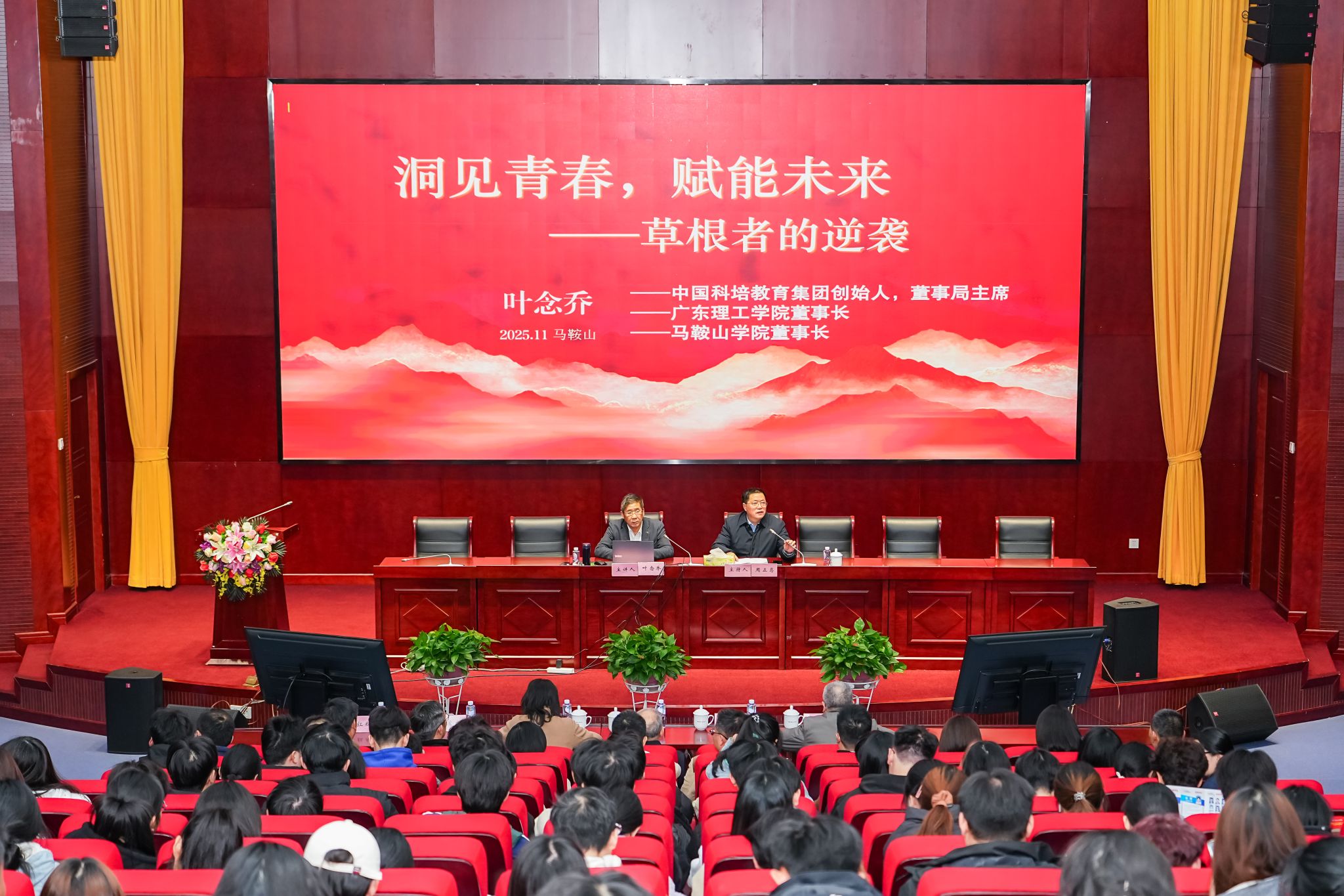 依托中国科培教育集团的资源优势,旗下马鞍山学院文化大讲堂已成为启迪学生思想的重要平台。2025年11月25日,在科培集团的支持下,马鞍山学院成功举办"洞见青春,赋能未来"为主题的文化大讲堂活动,科培集团创始人兼董事局主席、马鞍山学院董事长叶念乔先生为师生倾情开讲。